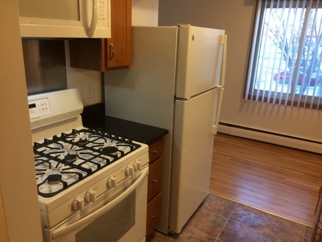 Middle floor apartment. Large front living room and dinning space. Fully renovated kitchen including granite counter tops, microwave and dishwasher. Updated bathroom with new tub and tile. Large front hall walk in closet. Great bedroom with ceiling fans and ample closet space.